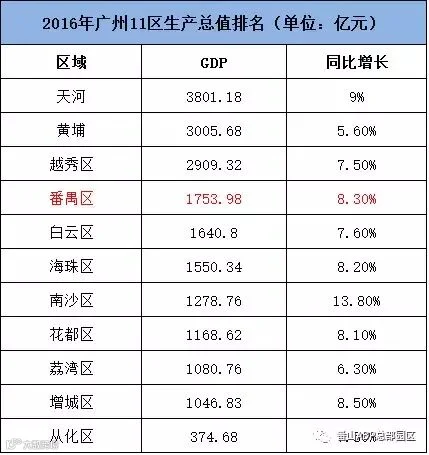 2016年广州各区GDP数据来看