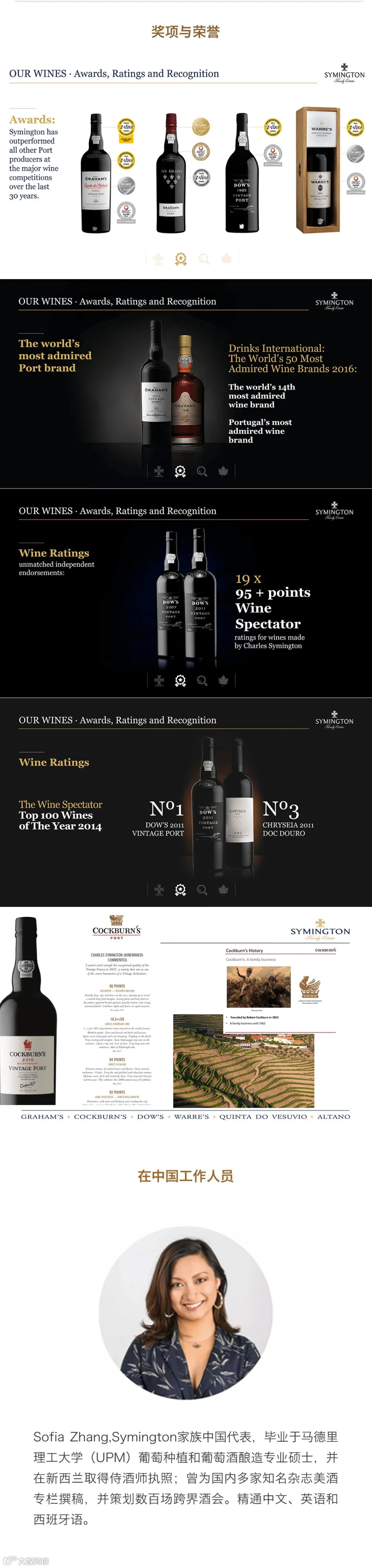 精品高端智利葡萄酒和精品波特进口商,我们是中国大陆年份波特现存量较大的进口商。 拥有的波特品牌:鸟烧园(Cockburn's)波特、多斯(Dow's)年份波特、维苏威(Vesuvio)年份波特及干红,华莱士(Warre's)年份波特等等