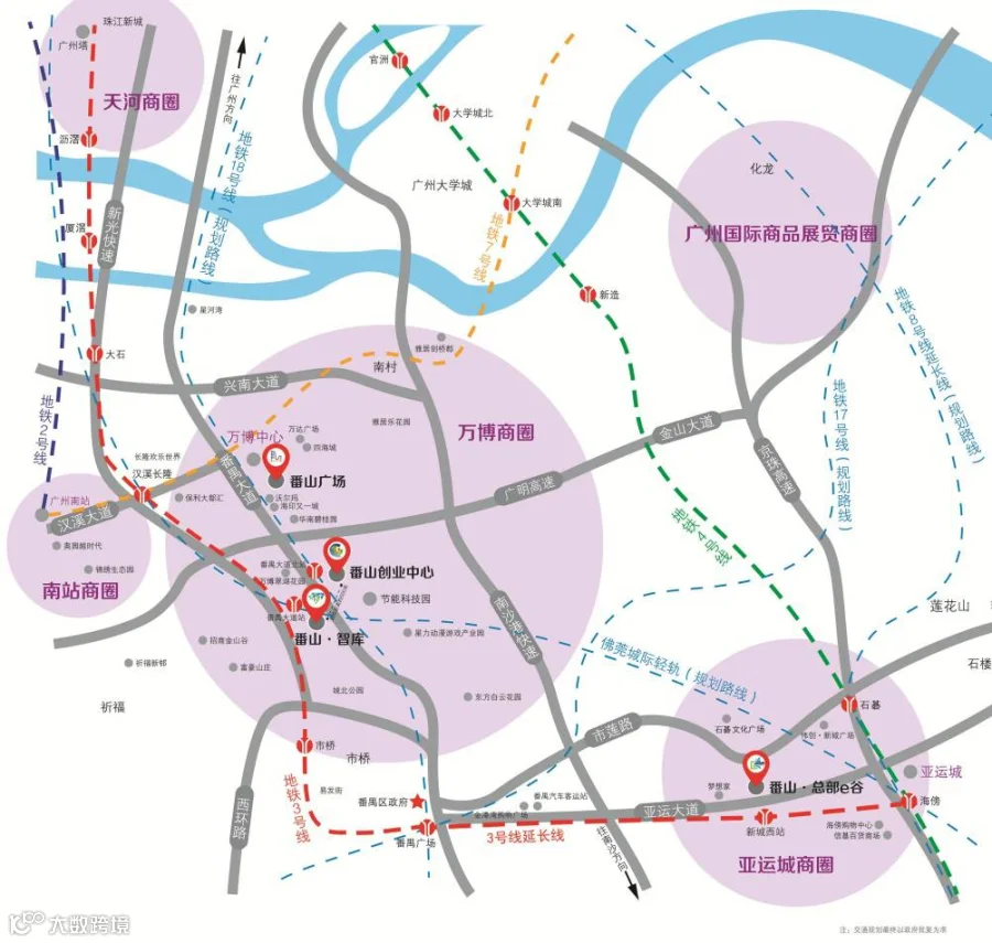 园区更比邻地铁三号线延长线新城西站、地铁四号线石碁站,多条市内公交线路,交通网络辐射万博商务区、市桥商圈等。