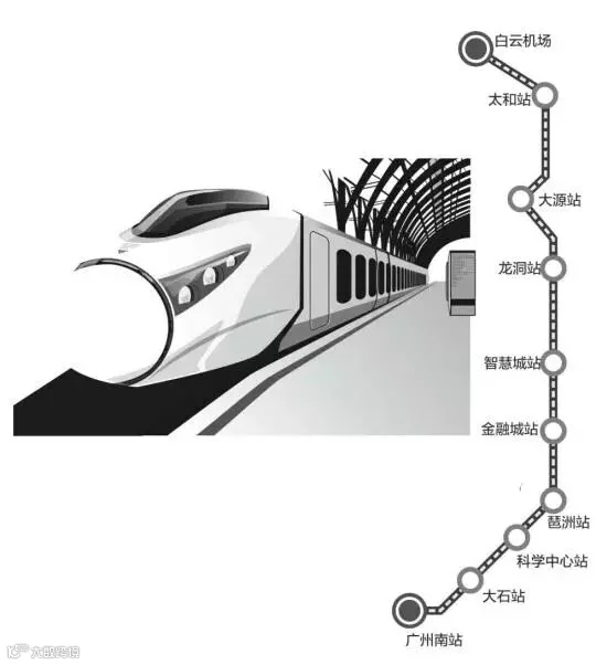 珠三角城际轨道交通广佛环线广州南站至白云机场段项目,位于珠江三角洲中部,线路起于广州南站(不含),向东北经番禺区大石、科学中心,琶洲会展中心,天河区金融城、岑村、火炉山,白云区大源和太和,接入穗莞深城际铁路竹料站(不含)。