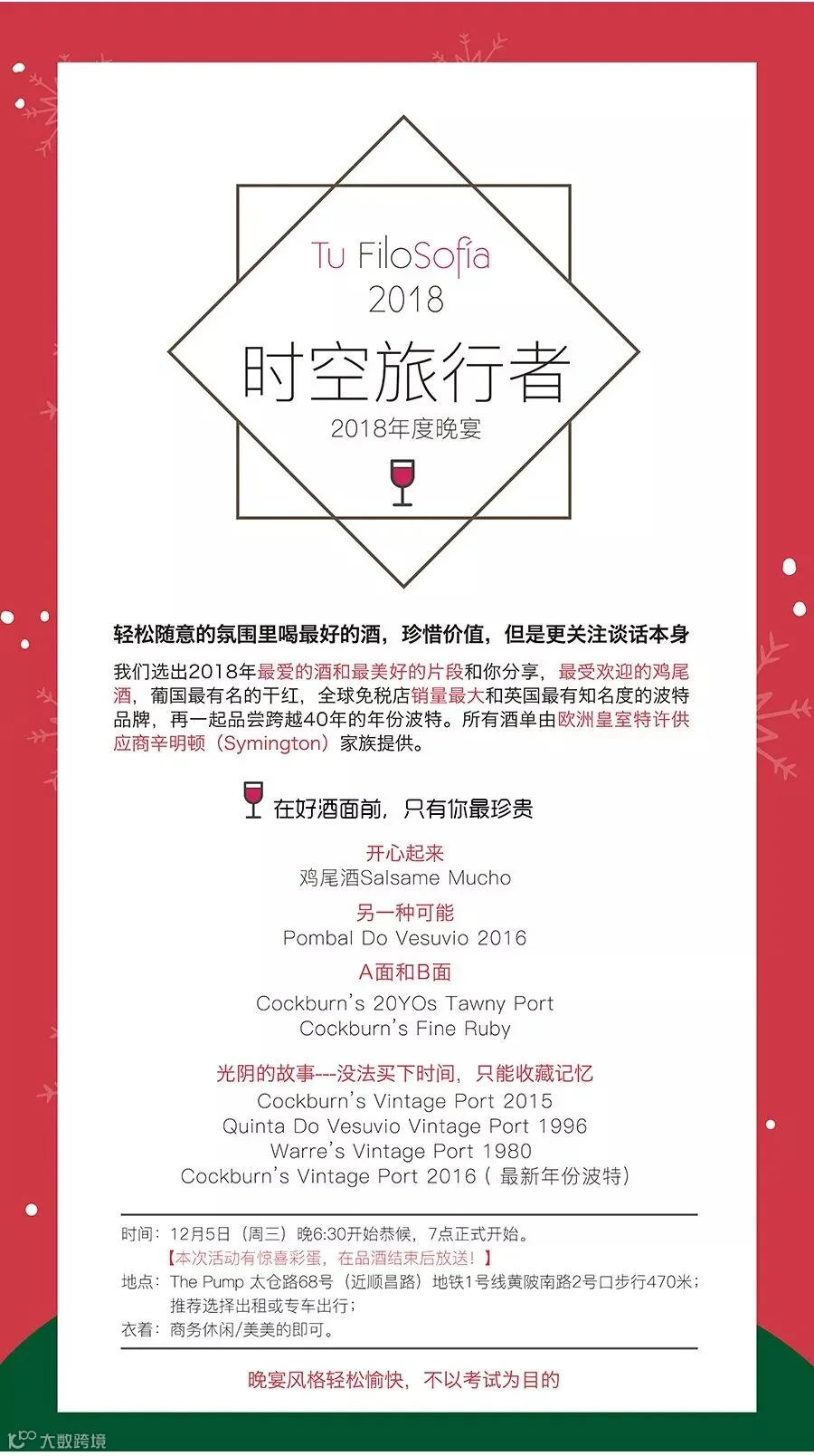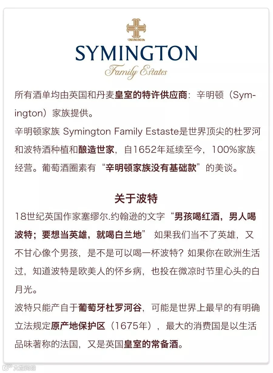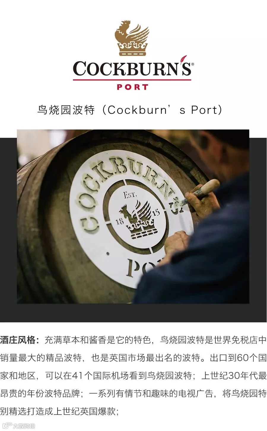 精品高端智利葡萄酒和精品波特进口商,我们是中国大陆年份波特现存量较大的进口商。 拥有的波特品牌:鸟烧园(Cockburn's)波特、多斯(Dow's)年份波特、维苏威(Vesuvio)年份波特及干红,华莱士(Warre's)年份波特等等