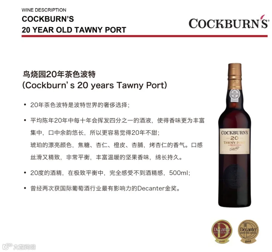 英国市场最畅销的波特,也是在全球免税店内销量最大的精品波特;