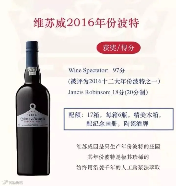 由于Quinta do Vesuvio极佳的风土环境和庄园自身条件,几乎每年都有一部分优秀的葡萄收成、来出品单一庄园年份波特,这其中自然包括了所有那些整个产区公认的顶级年份年。Quinta do Vesuvio目前国内现货有1992、1995、1996年份以及新鲜抵达的2016年份波特。