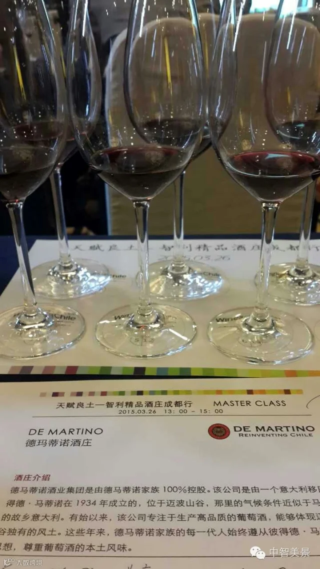 导读:中智美景携手德马蒂诺总统珍藏酿酒师精选登陆 天赋良土--智利精品酒庄成都行 活动,作为智利顶级佳酿之一的De