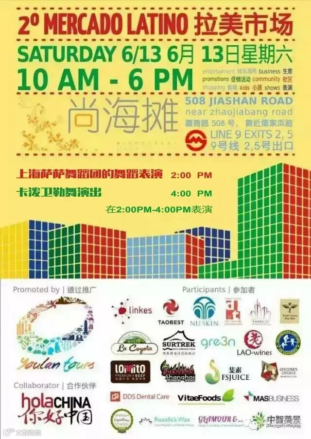 导读:“尚海摊”集市活动预告,6月13日(本周六),中智美景将在拉美市场举办活动,届时会有美酒美食的品尝还有表演欣赏!