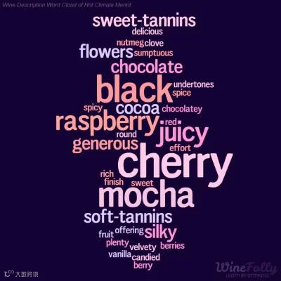 温暖的气候美乐葡萄酒更有水果味,单宁不那么单一。