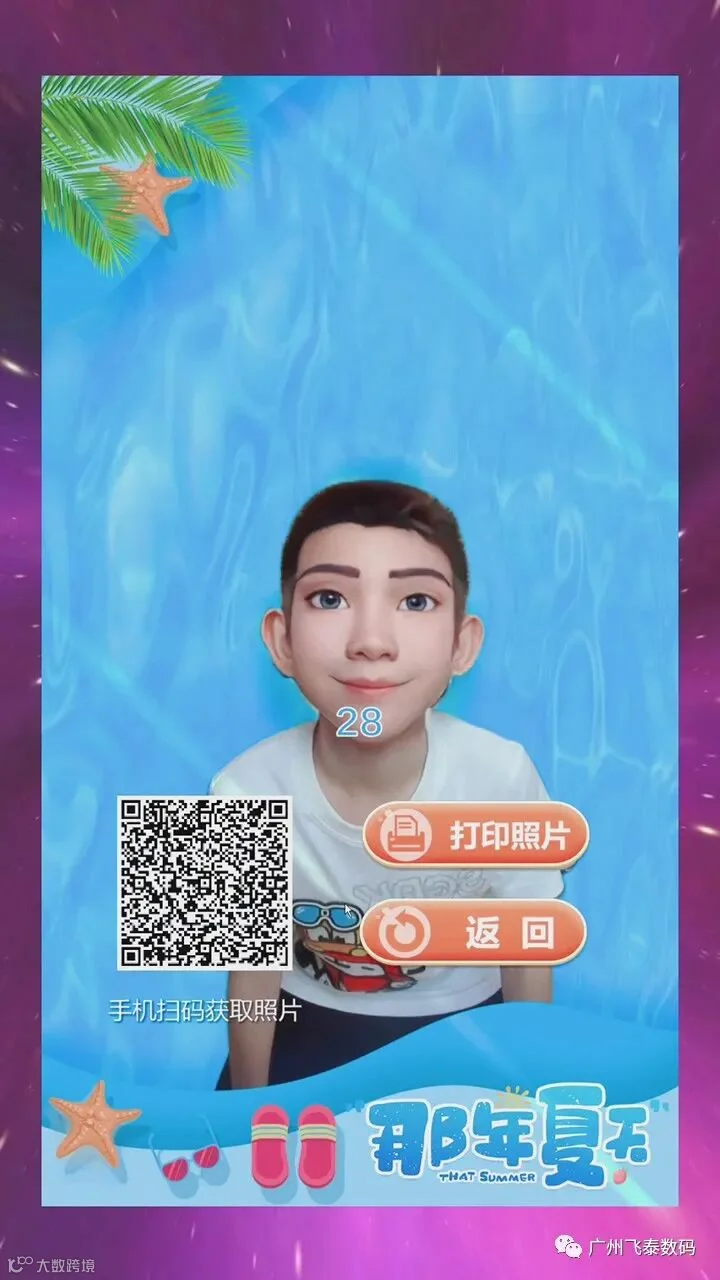 (3)最终合成照片:生成二维码,手机扫码下载/分享照片,可打印照片