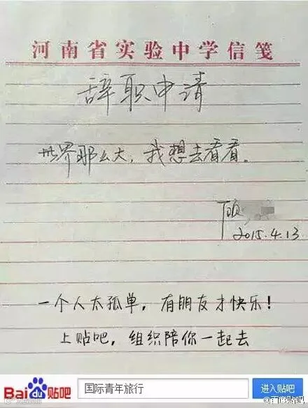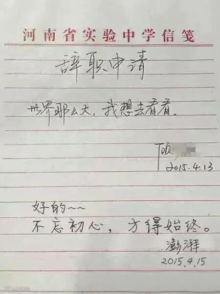 “世界那么大,我想去看看。”一封只有10个字的辞职信近期引来网友热议,有人直呼“潇洒率真”,也有人批评“矫揉造作”。小编表示: