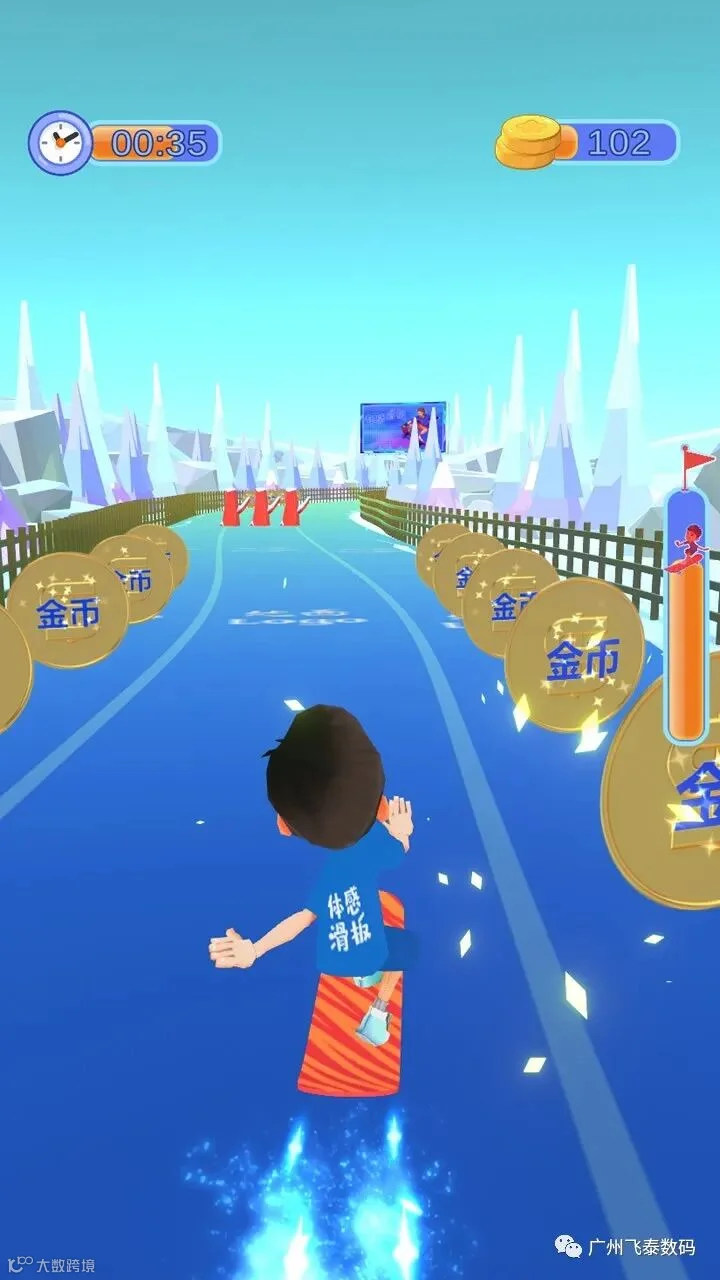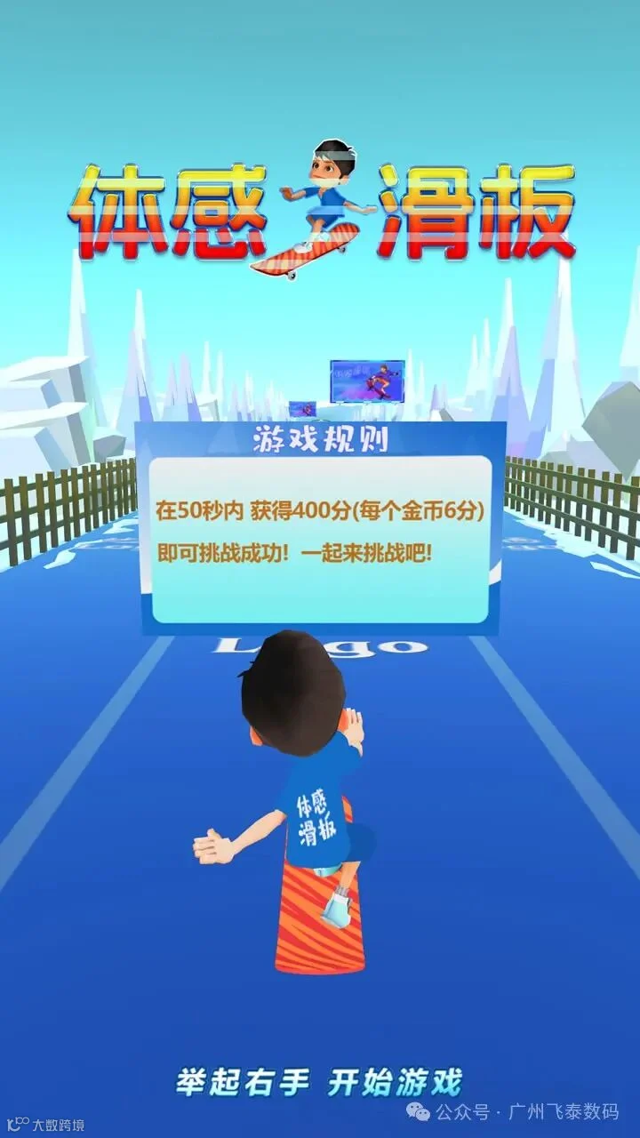无需头盔、手柄、遥控器 等任何物品,玩家通过“身体左右倾斜”控制方向,“身体原地跳跃”向上跳起,是一款充满全新体验的互动滑板游戏,快来挑战吧!