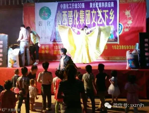 在小麦即将收获的季节,中能晋化为回馈广大农民对晋化肥料的支持,举办一场山西晋化集团文艺下乡活动,活动现场十分火爆,受到广大农民朋友的一致好评。