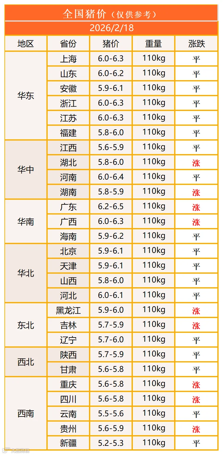 明日猪价2026年2月18日猪价信息