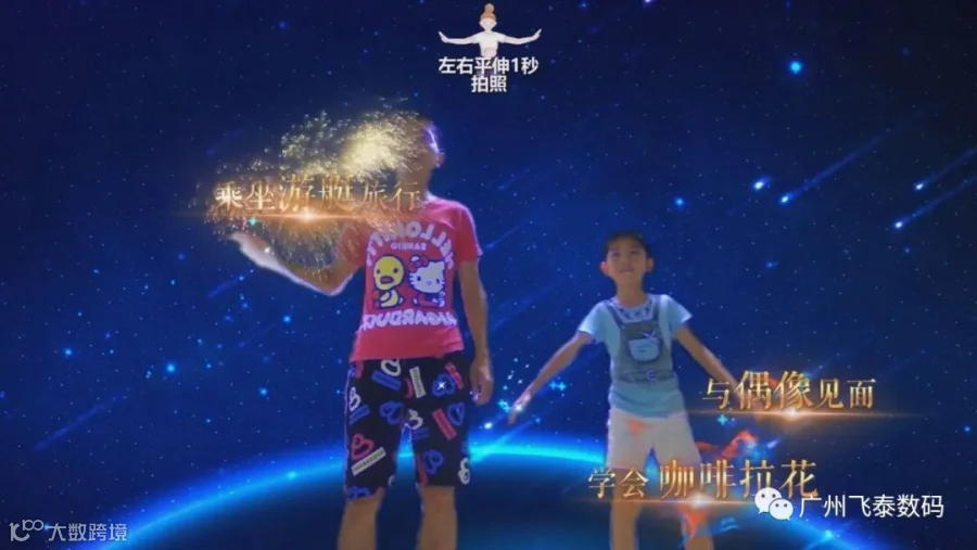 (1)当玩家进入摄像头拍摄区域,将穿越到一个美丽梦幻的星空之下,天空中不时会有黄色的流星落下