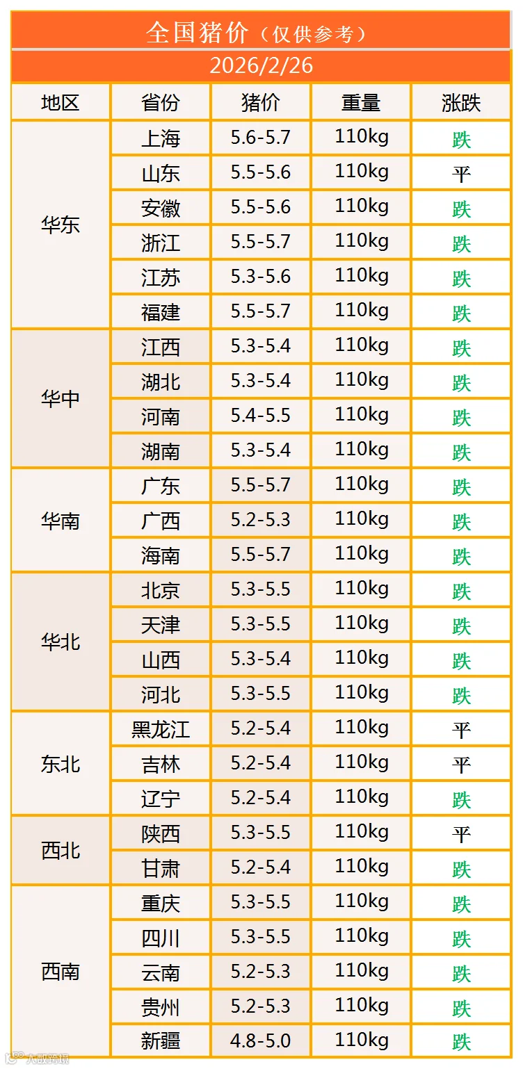 明日猪价2026年2月26日猪价信息