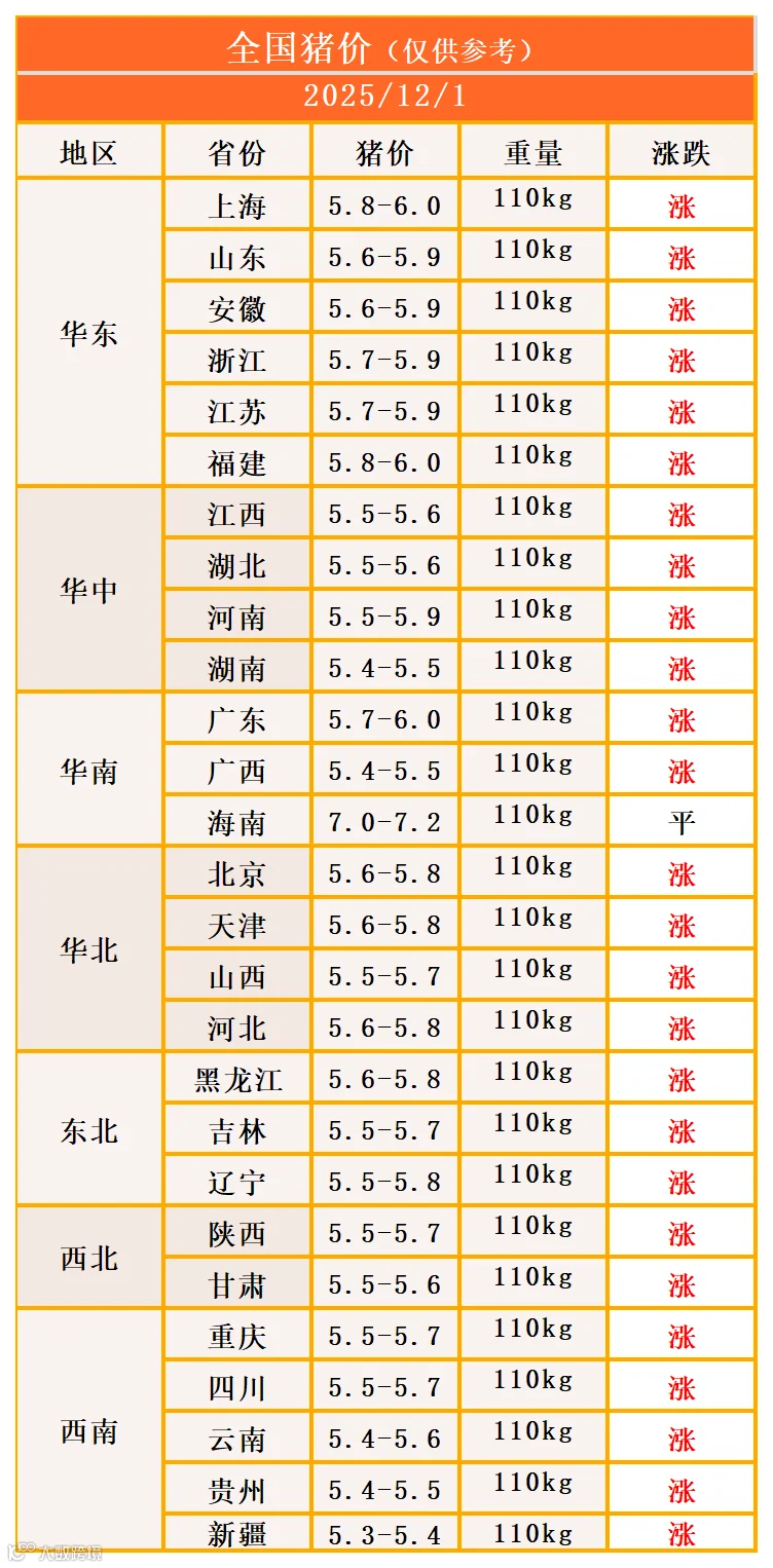 明日猪价2025年12月1日猪价信息