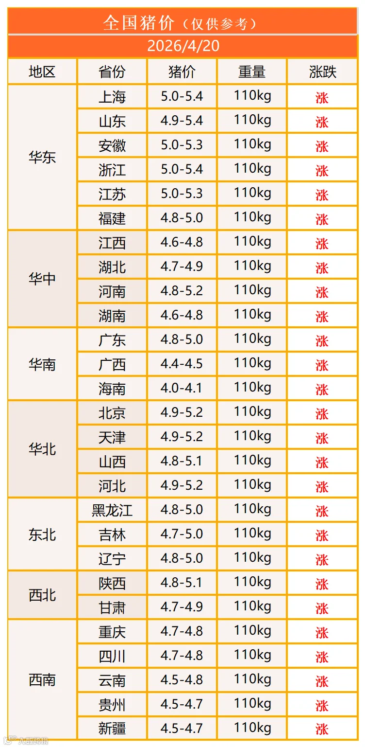 明日猪价2026年4月20日猪价信息