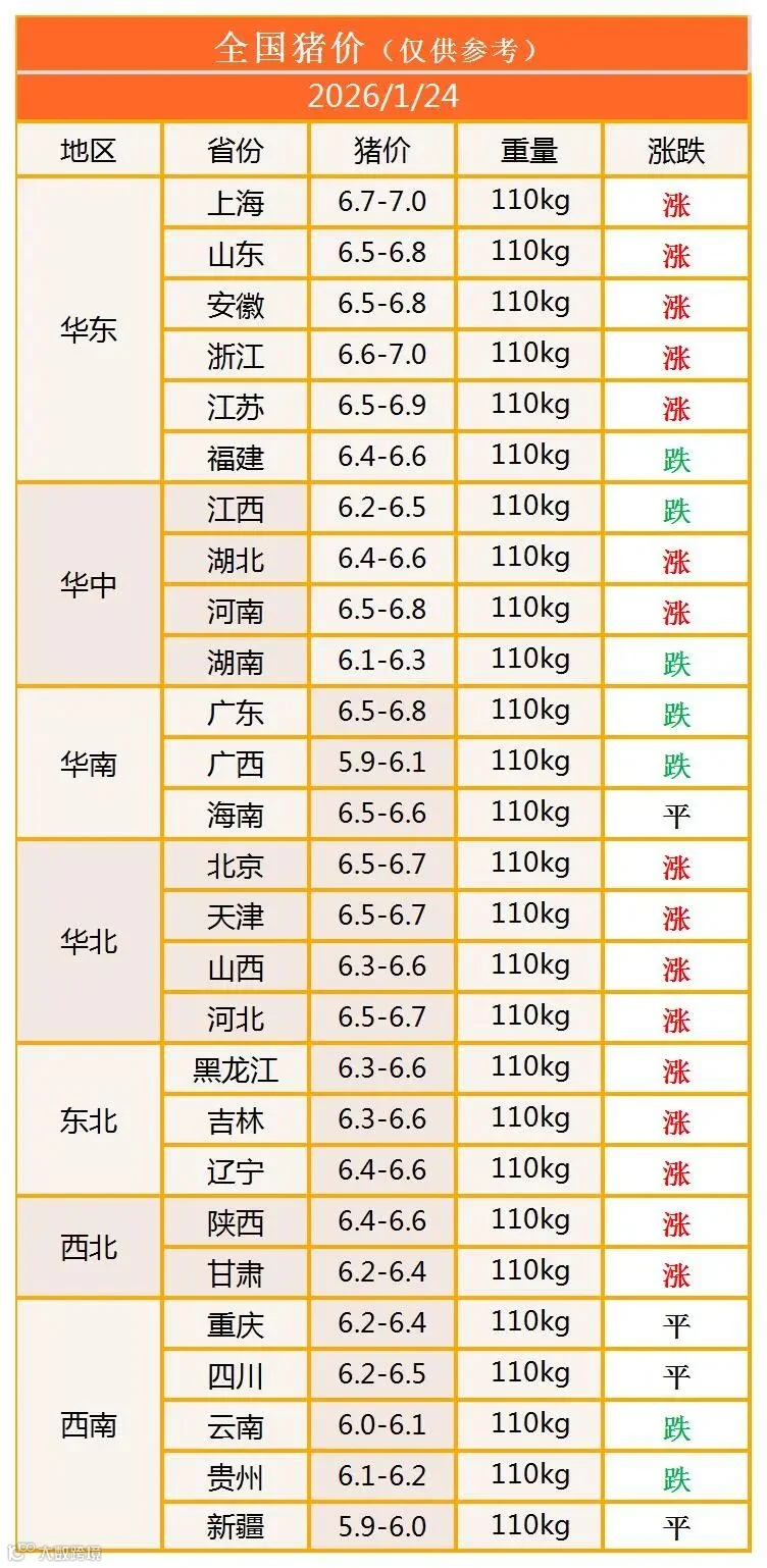 明日猪价2026年1月24日猪价信息