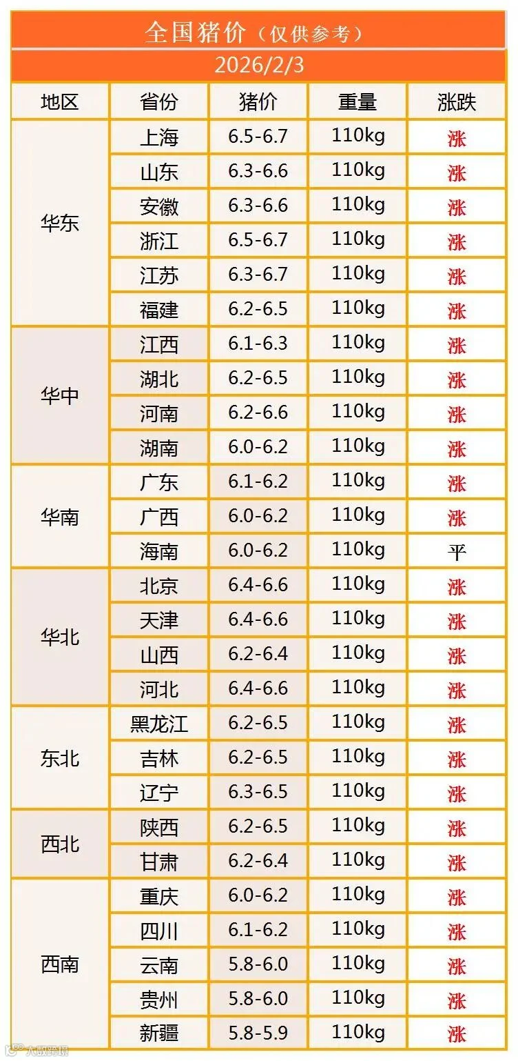 明日猪价2026年2月3日猪价信息