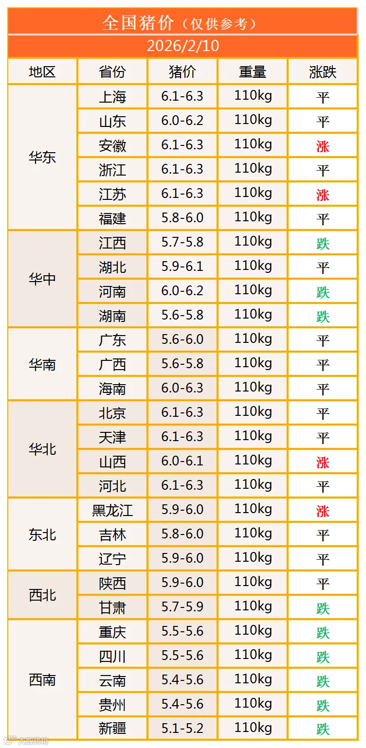 明日猪价2026年2月10日猪价信息