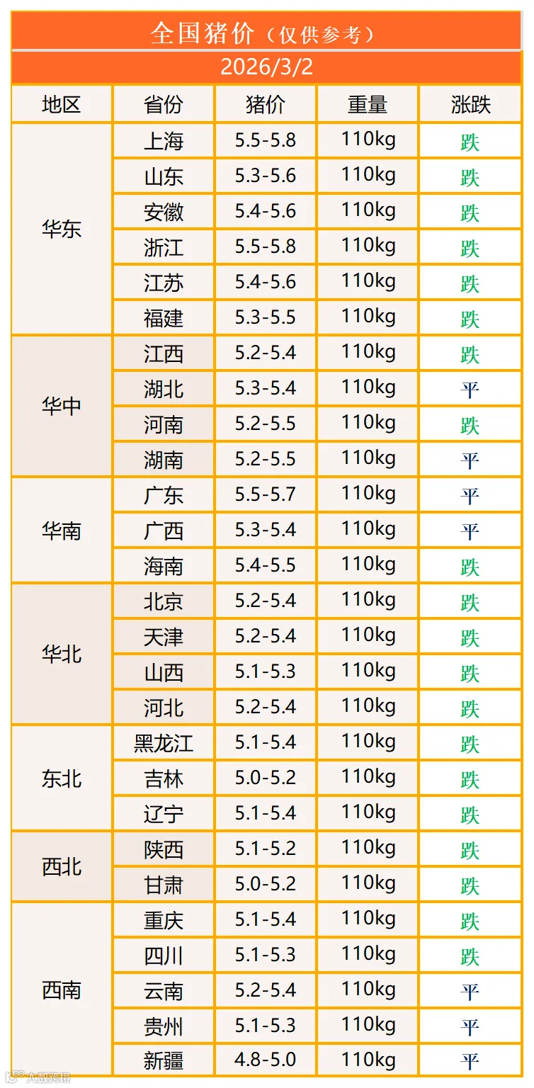 明日猪价2026年3月2日猪价信息