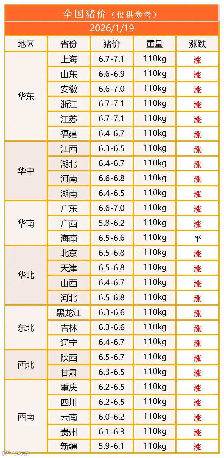 明日猪价2026年1月19日猪价信息