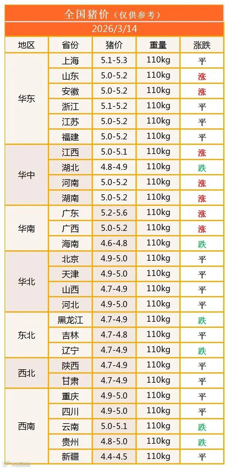 明日猪价2026年3月14日猪价信息