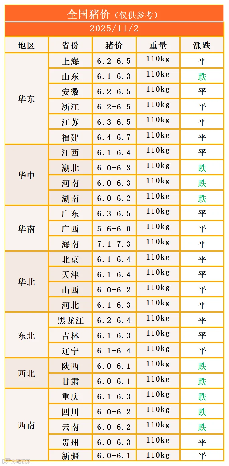 明日猪价2025年11月2日猪价信息
