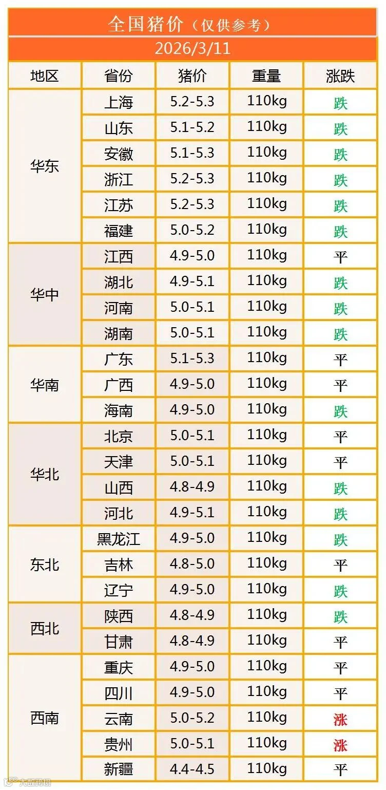 明日猪价2026年3月11日猪价信息