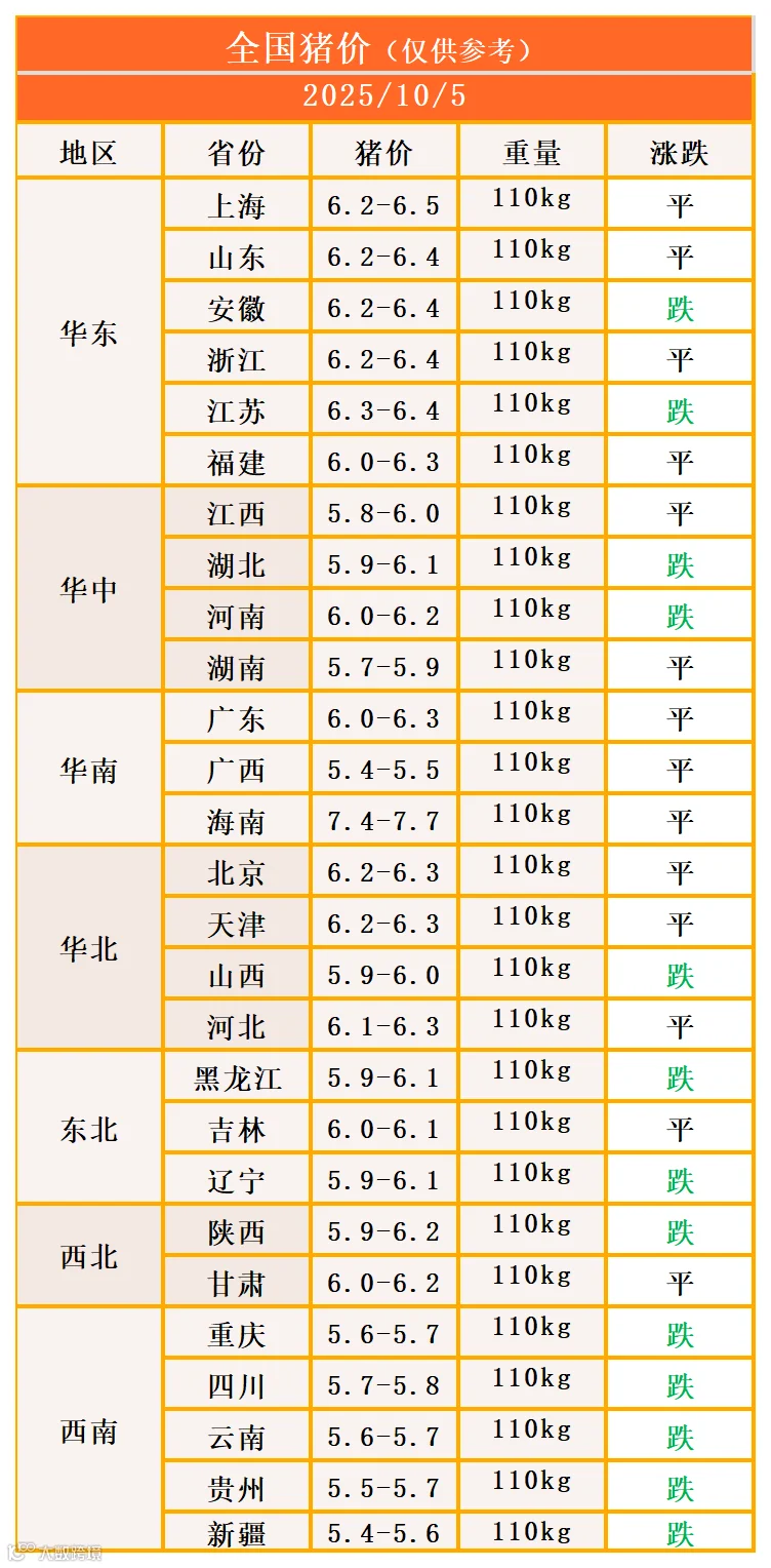 明日猪价2025年10月5日猪价信息