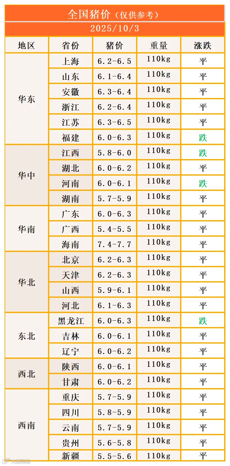 明日猪价2025年10月3日猪价信息