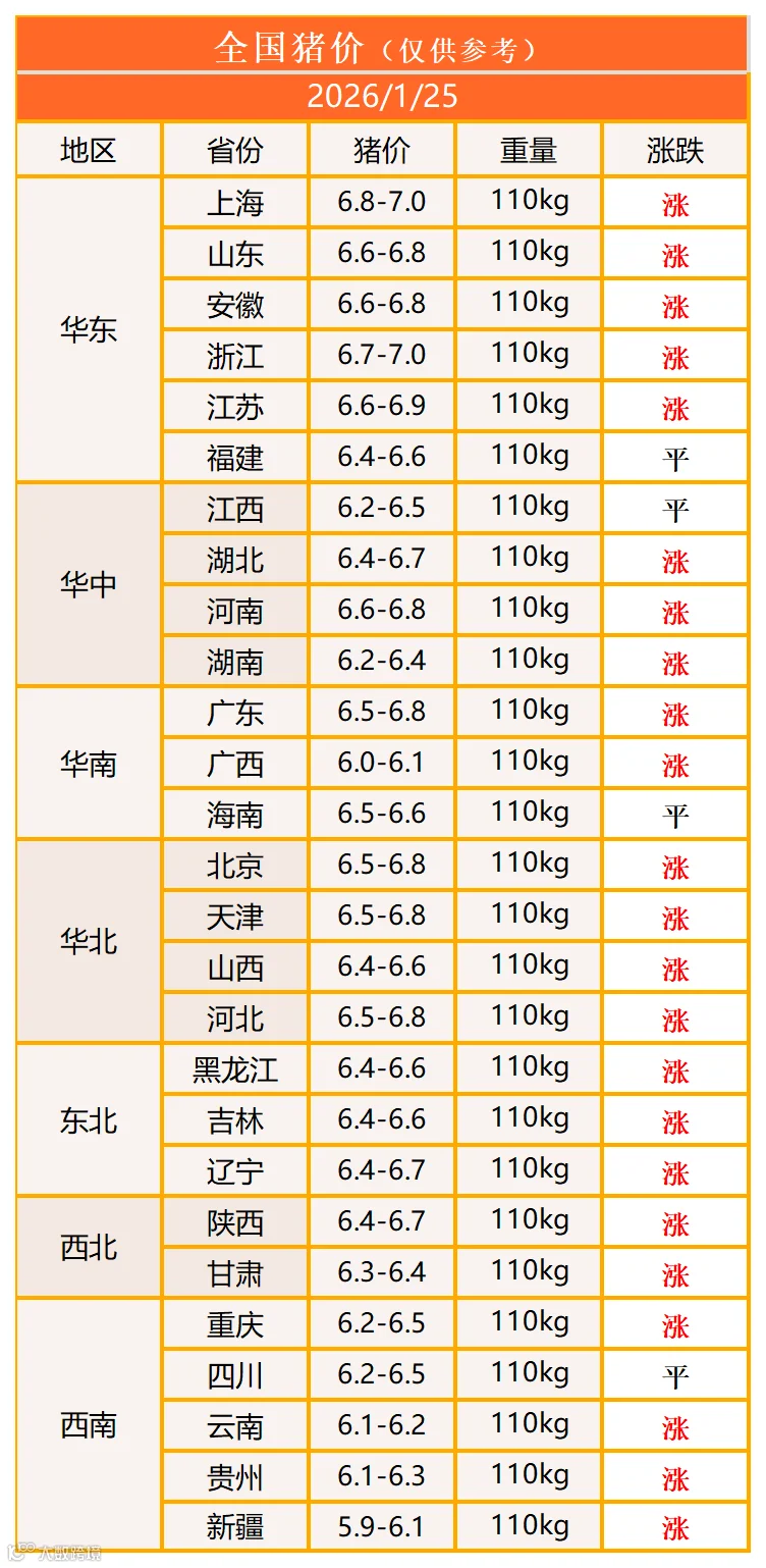 明日猪价2026年1月25日猪价信息