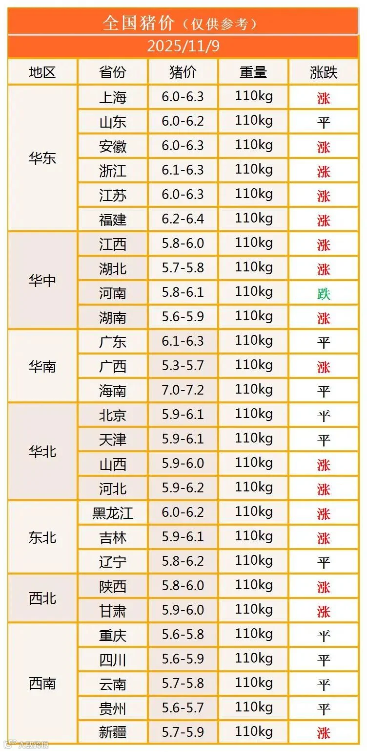 明日猪价2025年11月9日猪价信息