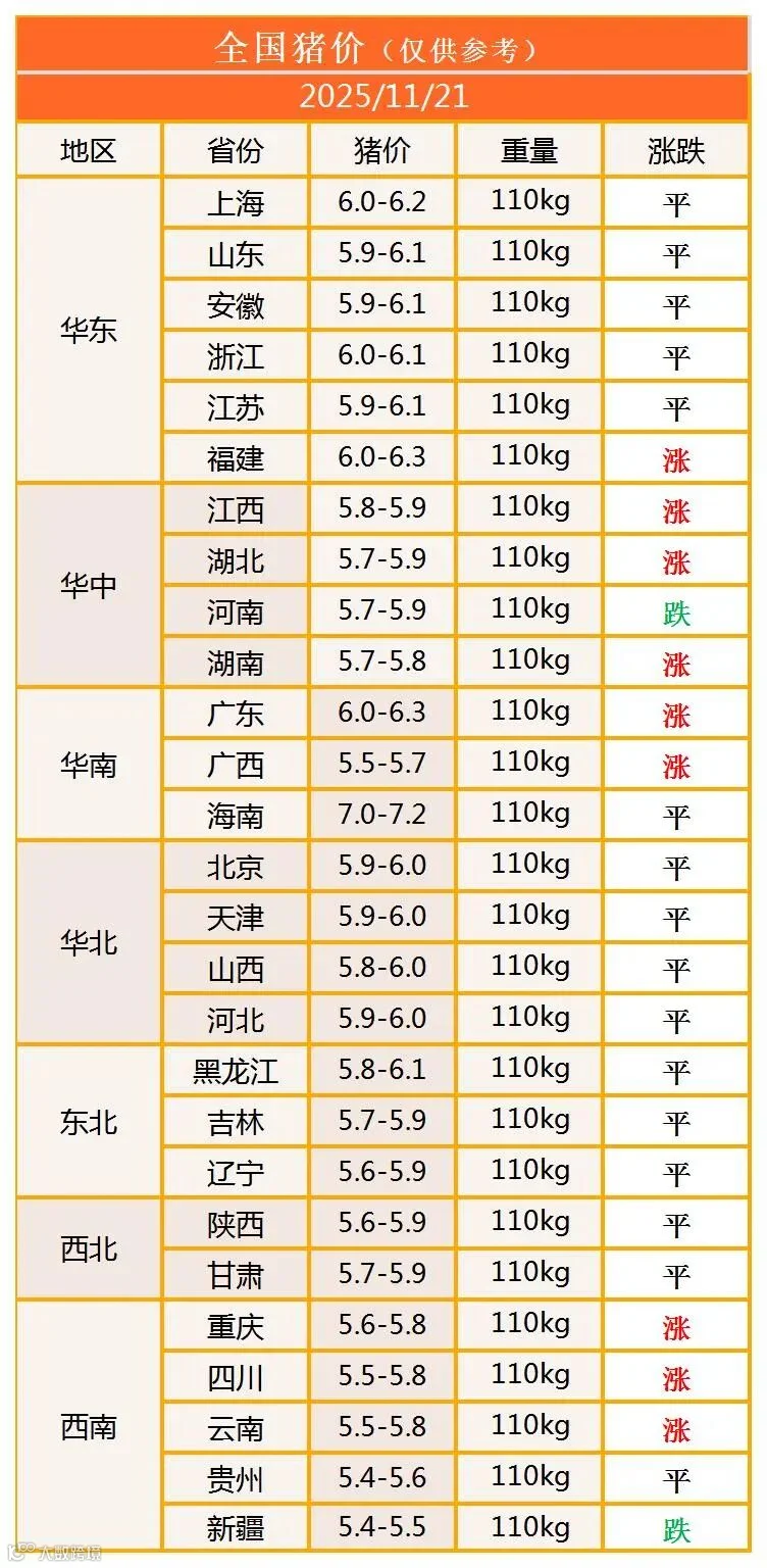 明日猪价2025年11月21日猪价信息