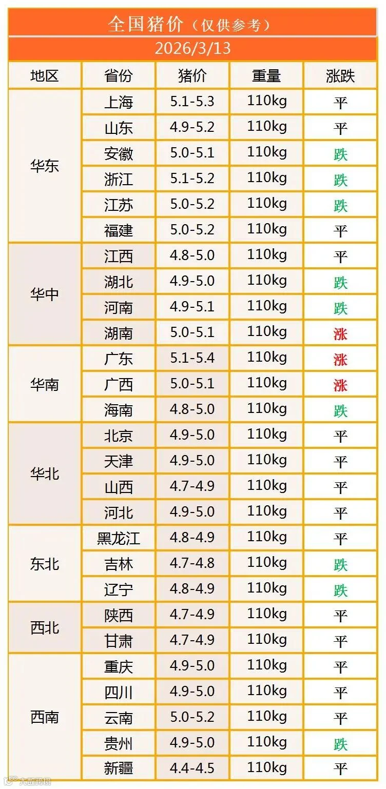 明日猪价2026年3月13日猪价信息