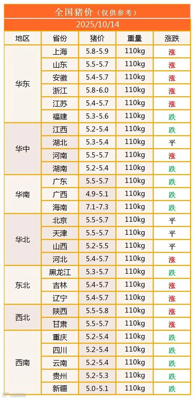 明日猪价2025年10月14日猪价信息