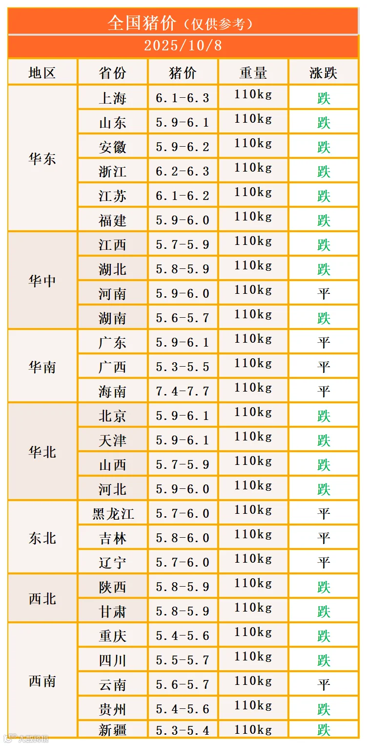 明日猪价2025年10月8日猪价信息