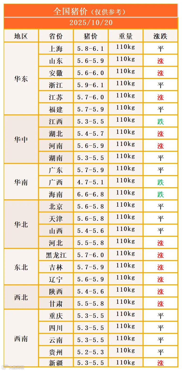 明日猪价2025年10月20日猪价信息