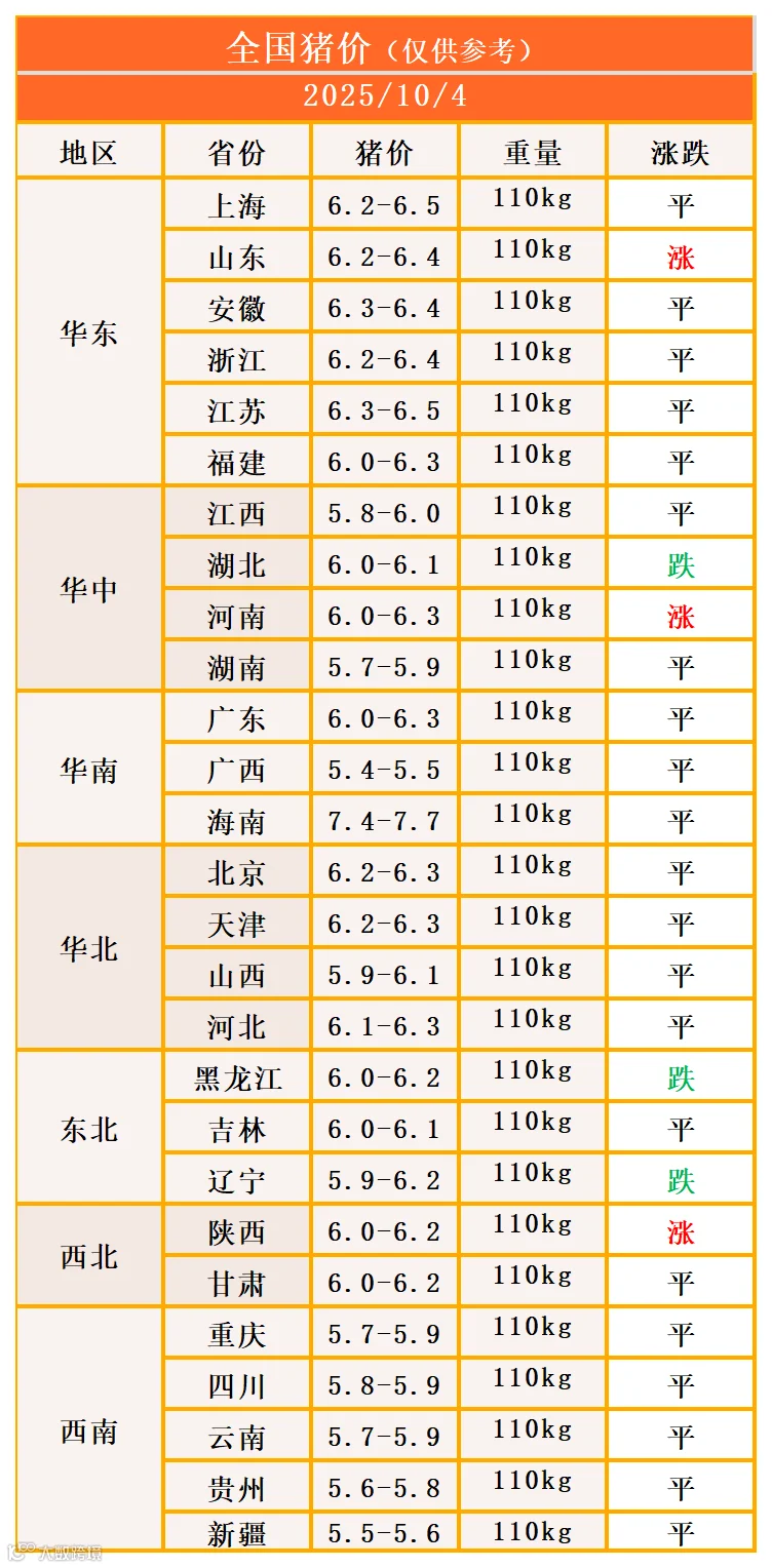 明日猪价2025年10月4日猪价信息