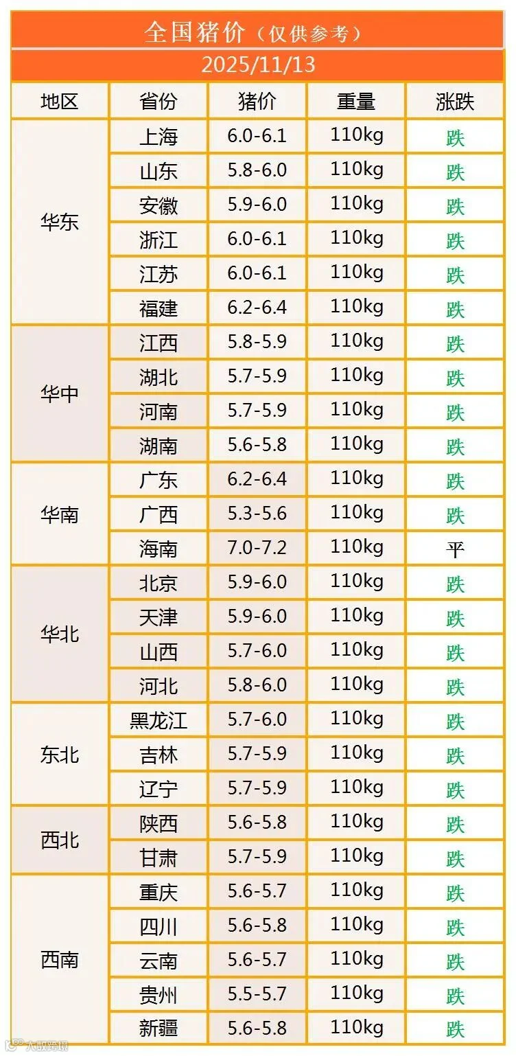 明日猪价2025年11月13日猪价信息