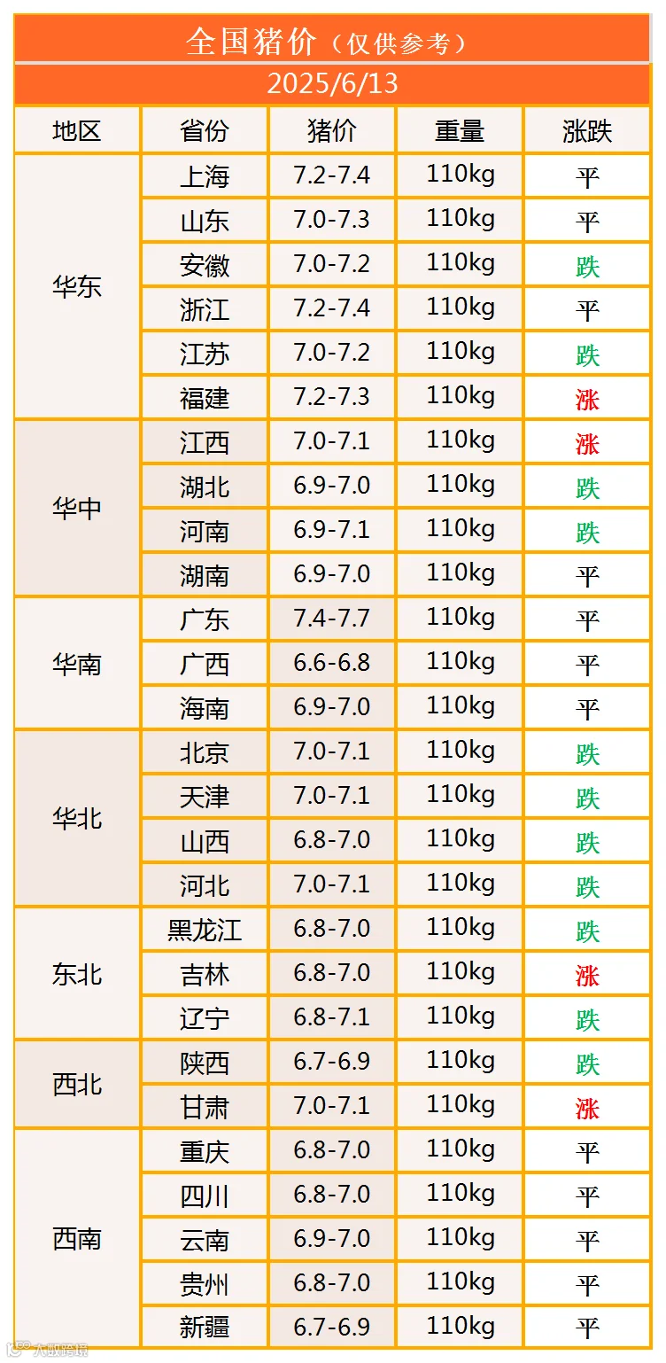 明日猪价2025年6月13日猪价信息