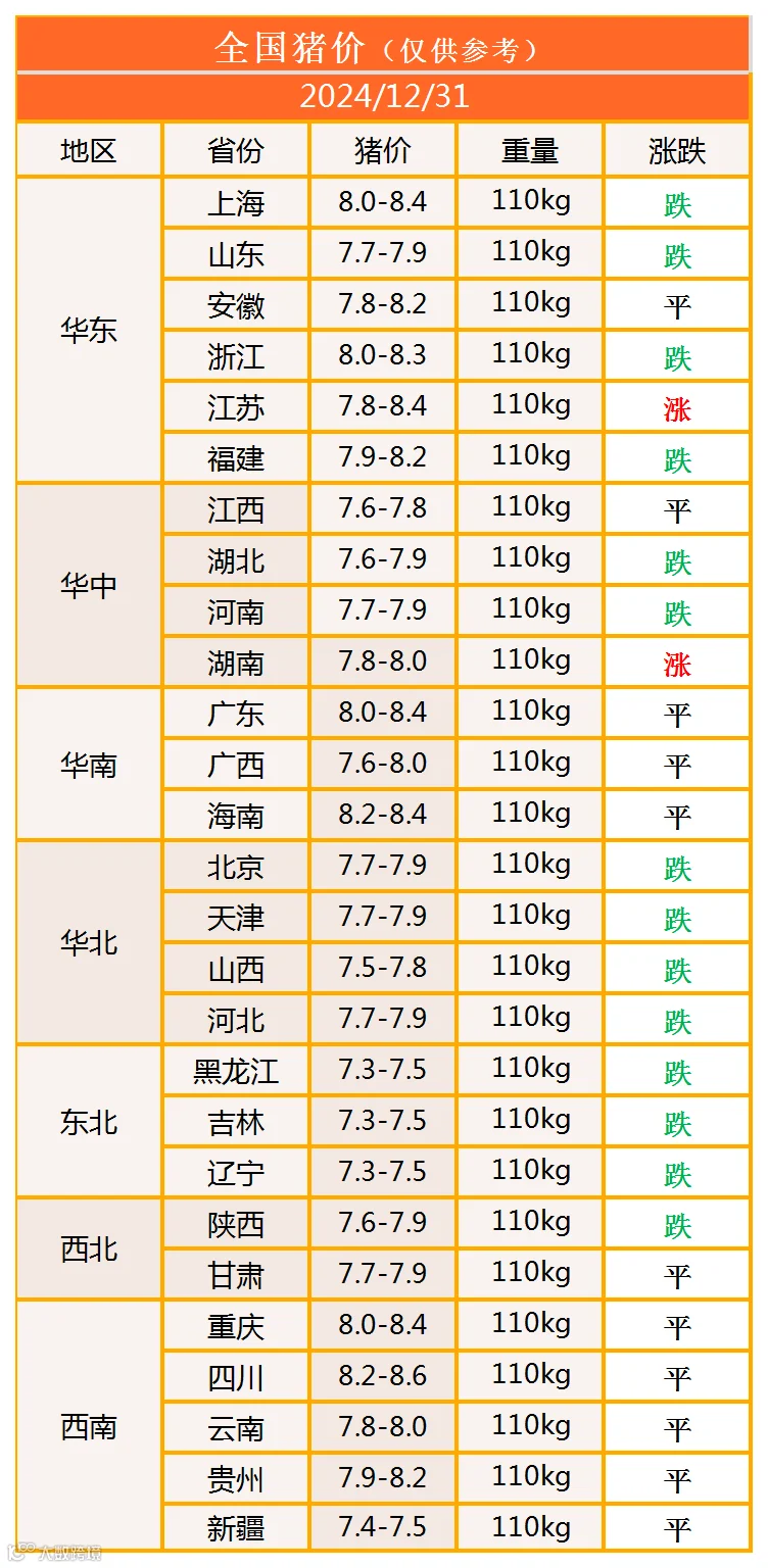 明日猪价2024年12月31日猪价信息