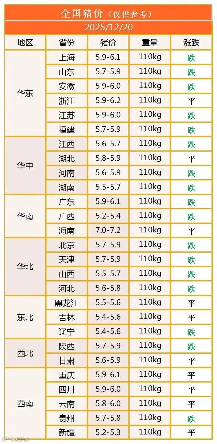 明日猪价2025年12月20日猪价信息