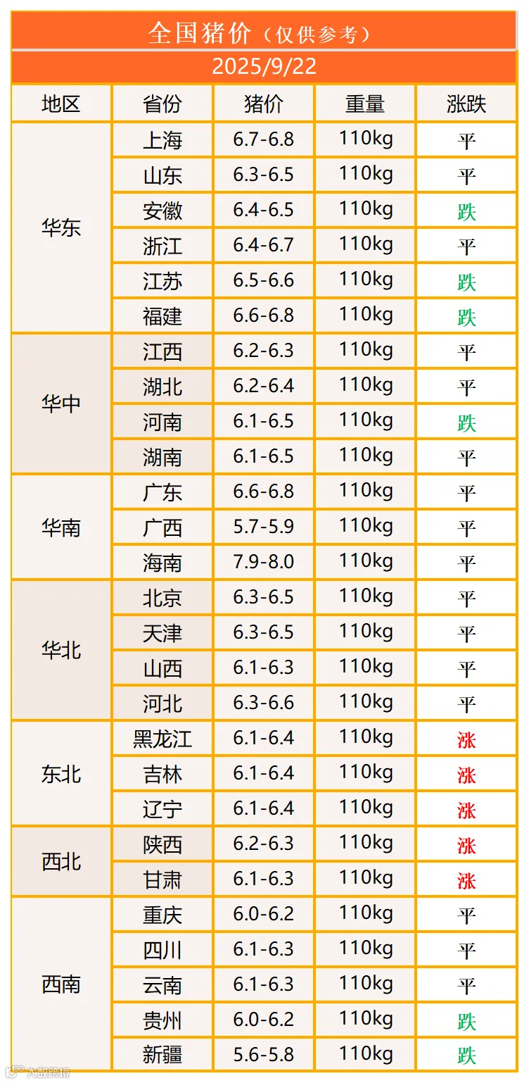 明日猪价2025年9月22日猪价信息