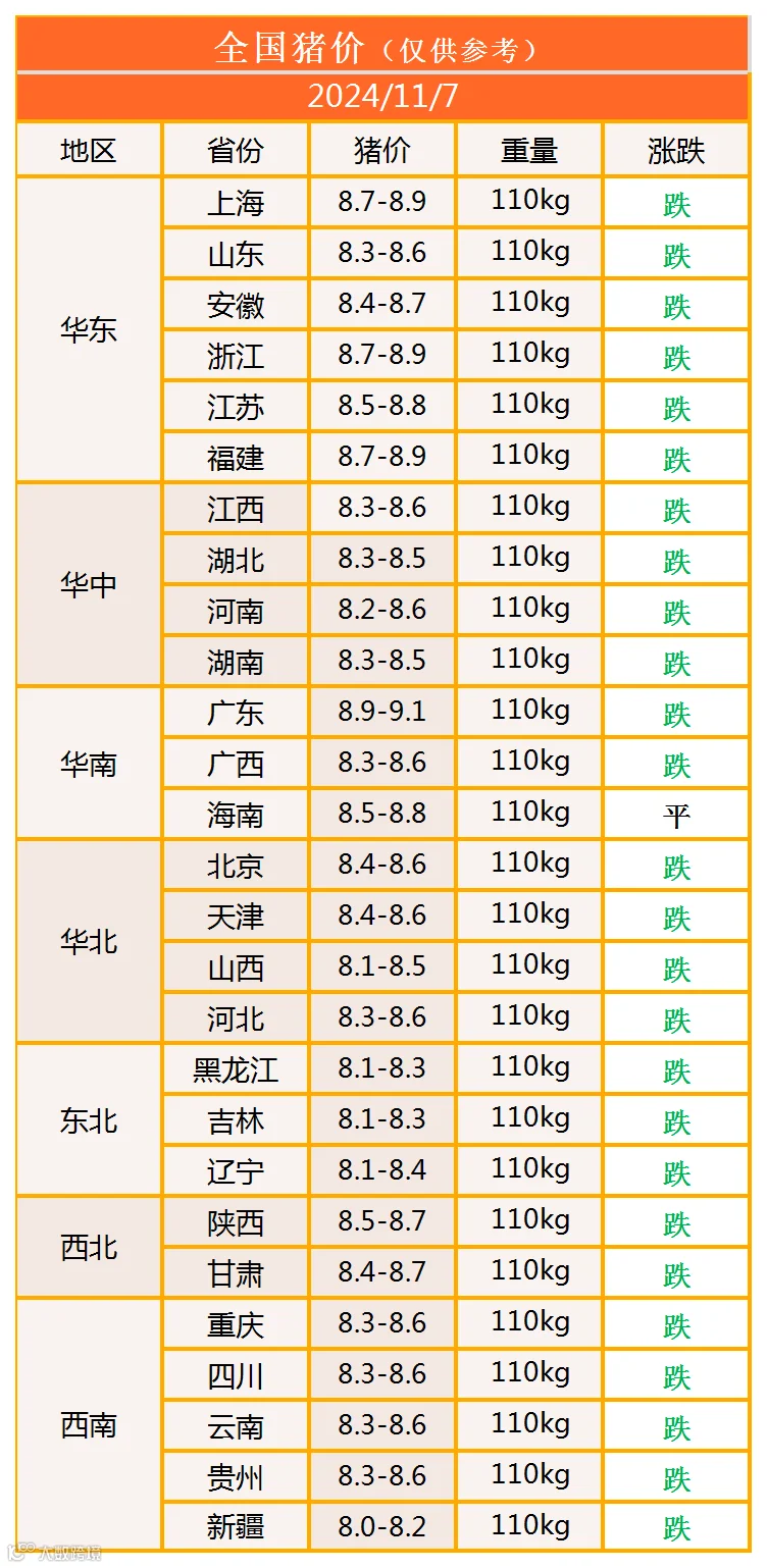 明日猪价2024年11月7日猪价信息