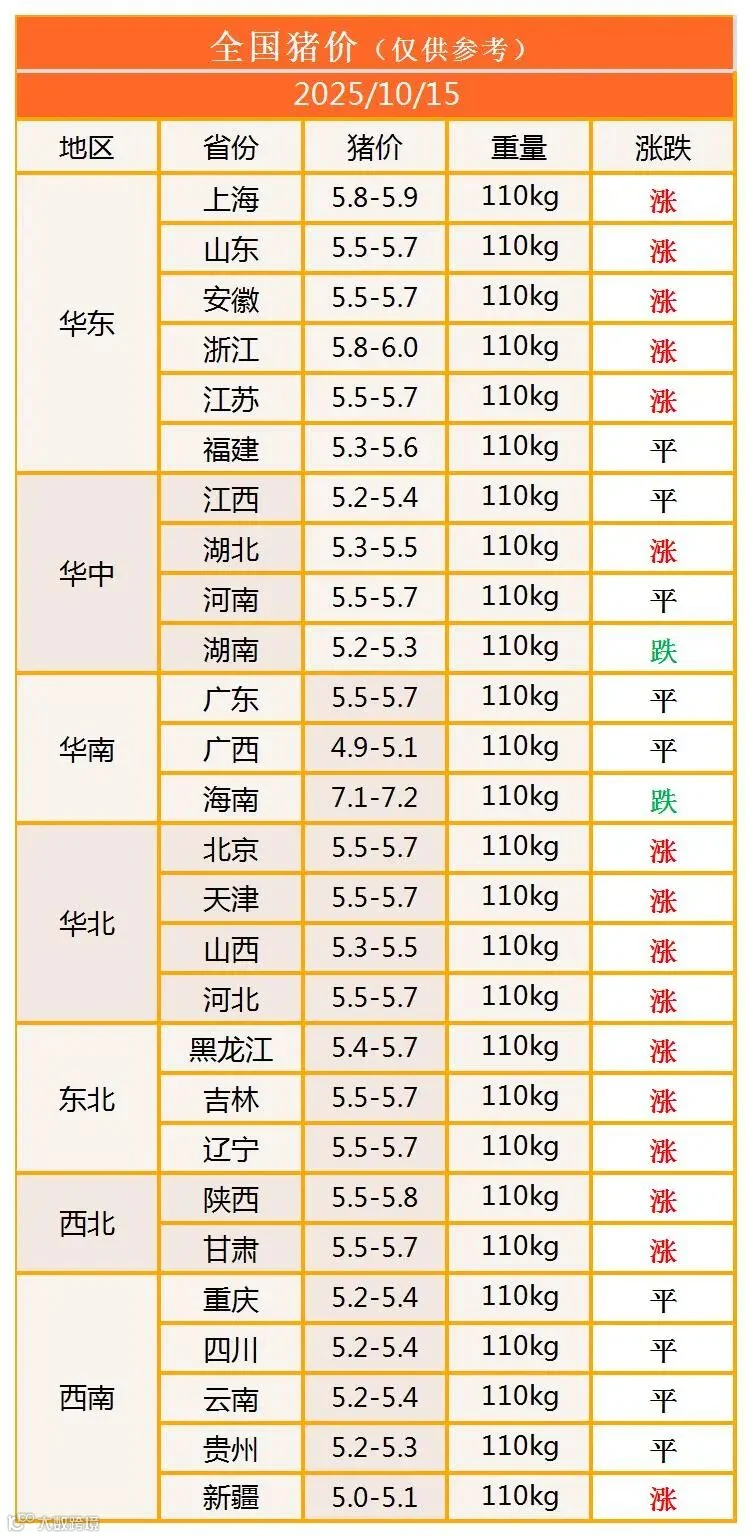 明日猪价2025年10月15日猪价信息