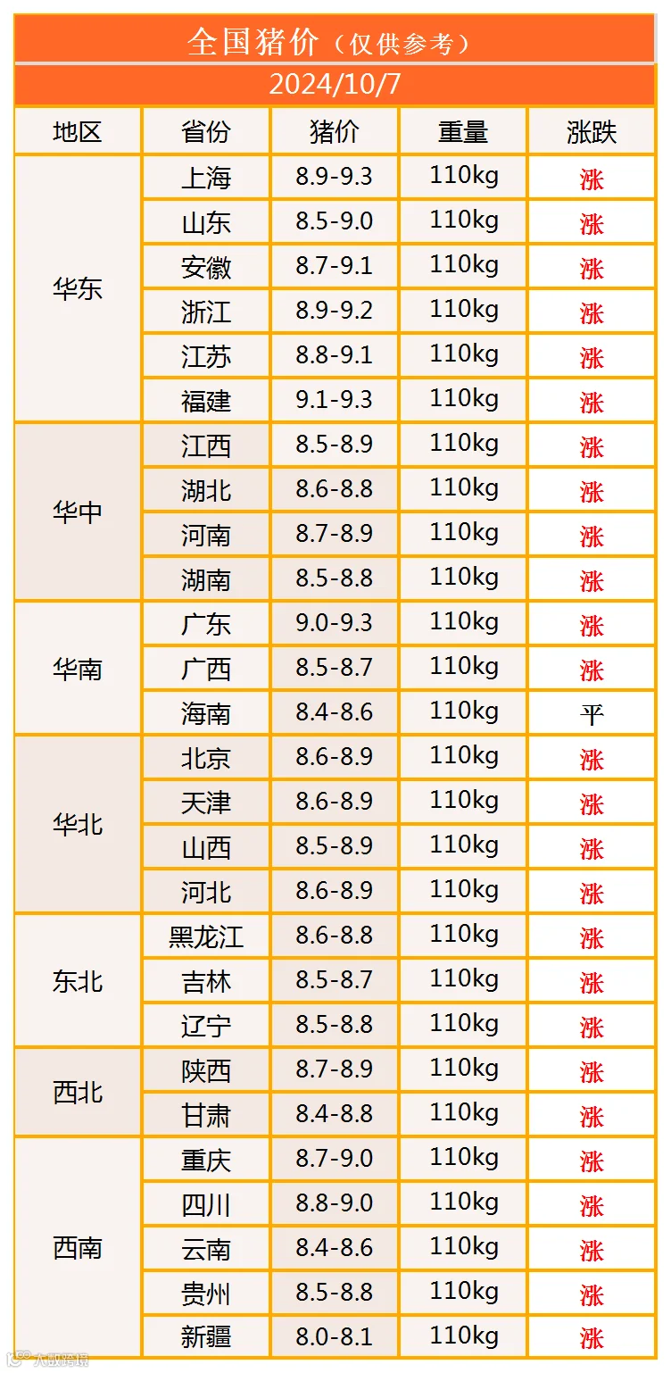 明日猪价2024年10月7日猪价信息