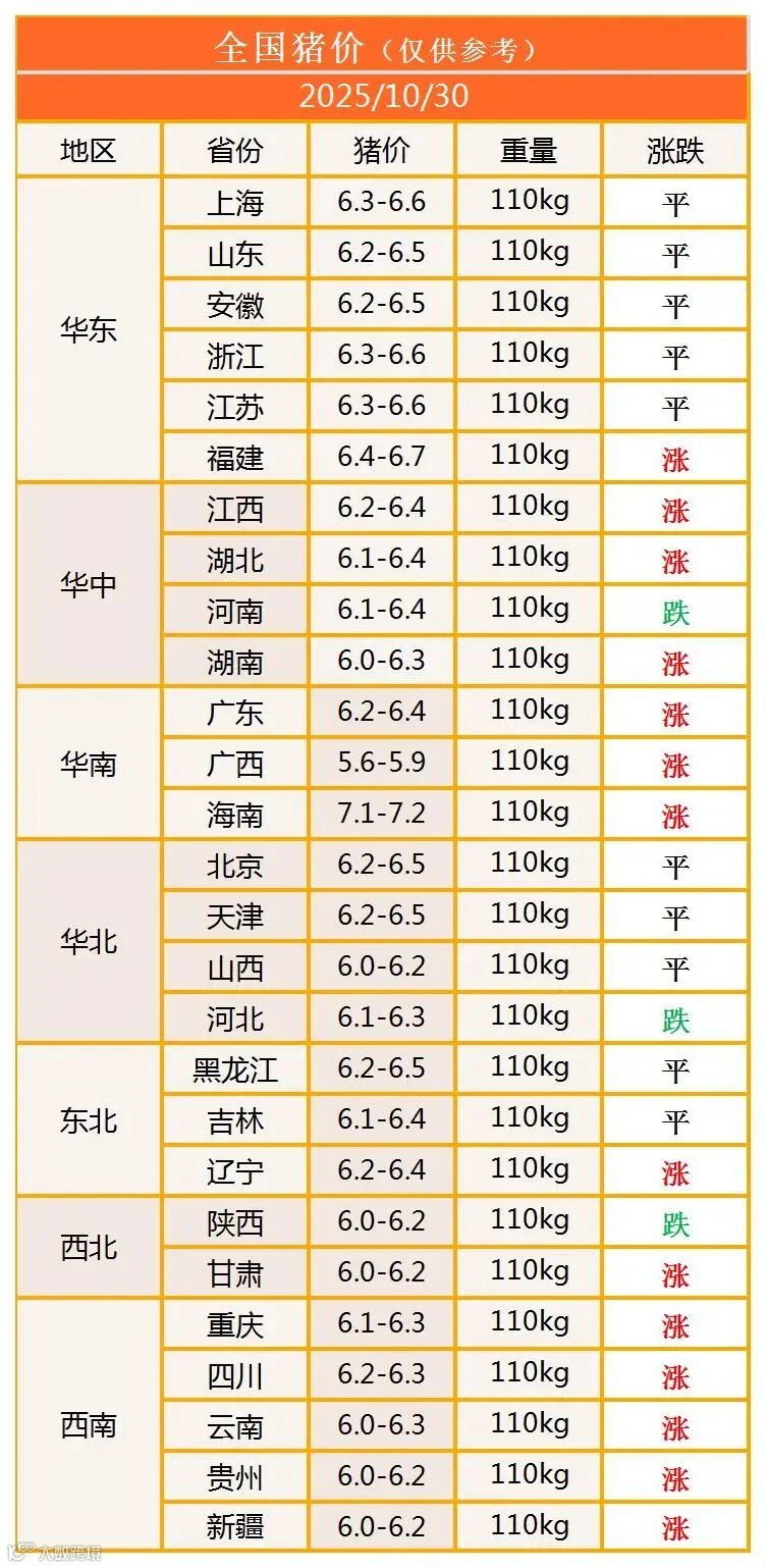 明日猪价2025年10月30日猪价信息
