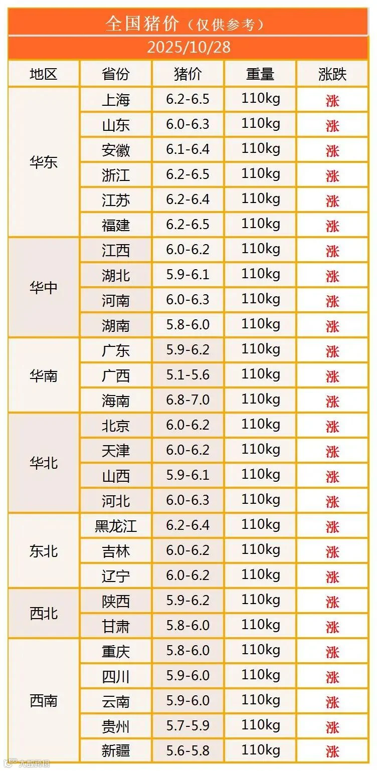 明日猪价2025年10月28日猪价信息