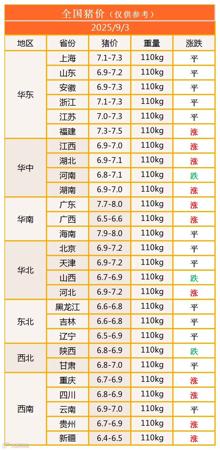 明日猪价2025年9月3日猪价信息