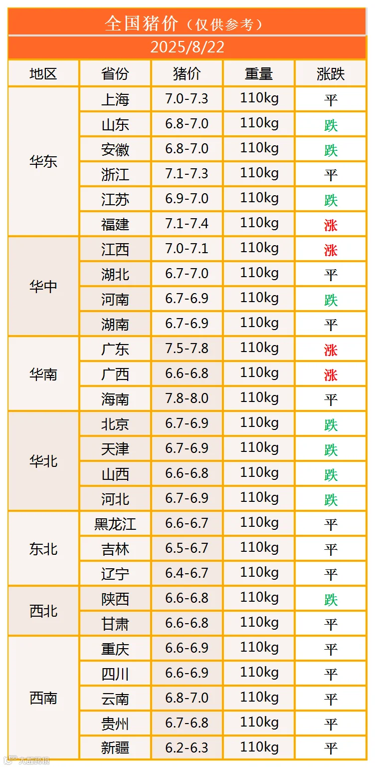 明日猪价2025年8月22日猪价信息