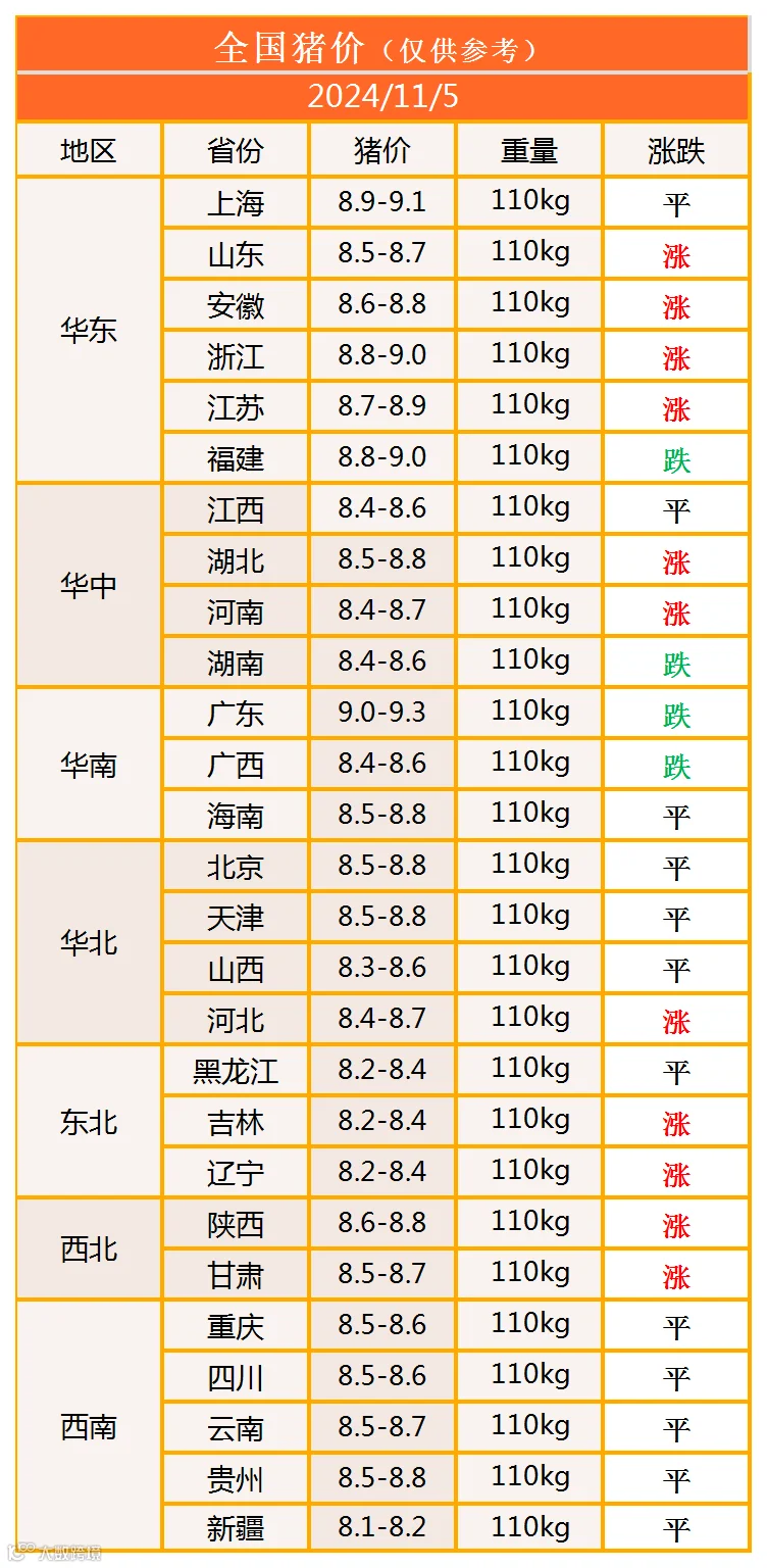明日猪价2024年11月5日猪价信息